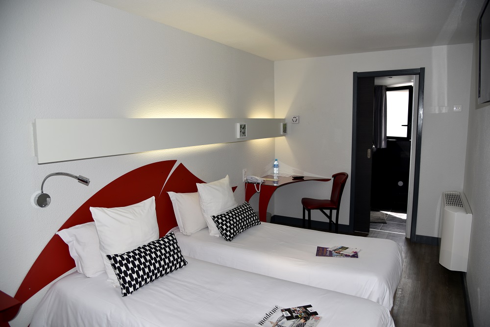 The Brit Hôtel Porte d'Espagne is located 5 km from Perpignan train station and city centre. Each of the 50 air-conditioned rooms features contemporary and modern decor. They are air-conditioned and equipped with a private bathroom with a walk-in shower, a 102cm TV and a courtesy tray. Free 100MB Wi-Fi fibre connection is available throughout the building. Non-smoking hotel. Free fenced parking. All-you-can-eat English breakfast. Shopping centre and restaurants nearby. Villeneuve de la Raho lake 5 minutes away with leisure and sporting activities.