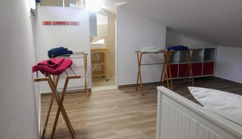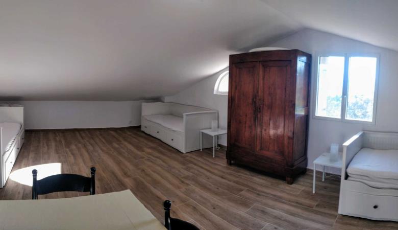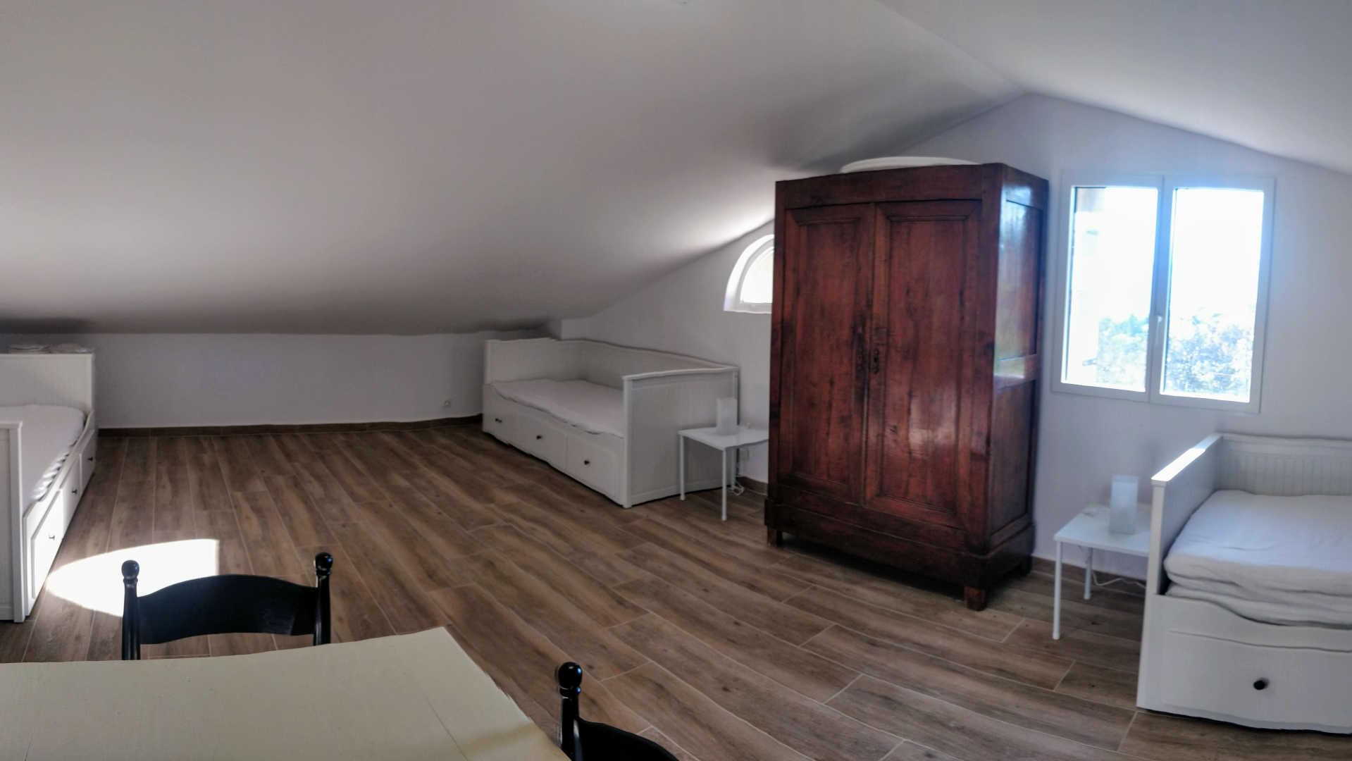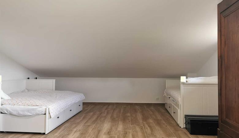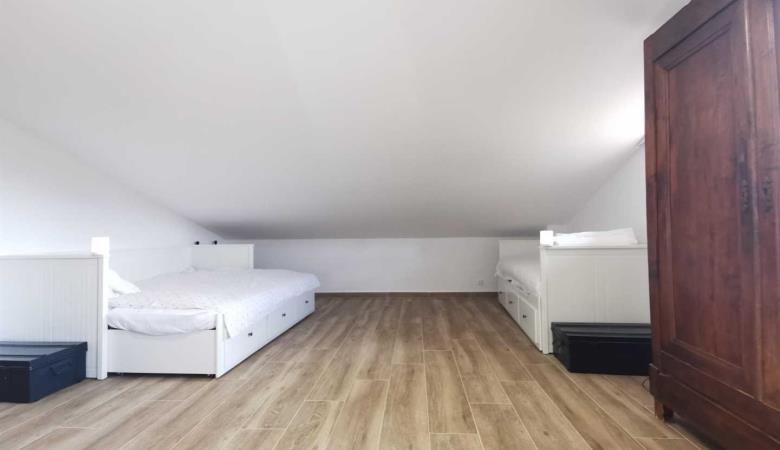 2nd floor: Attic bedroom with 6 single beds, shower room (wc).