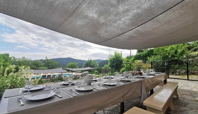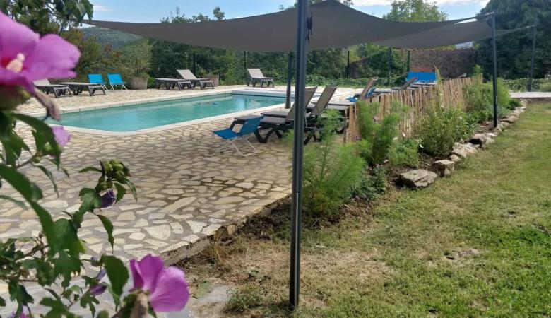From the terrace, you can enjoy a breathtaking view over the valley and the swimming pool shared by 4 apartments, bordered by a 150 m² terrace with sun loungers. The swimming pool, measuring 10 x 4 m and 1.40 m deep, is heated and ready to welcome you from June to September.