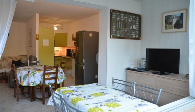 Large comfortable studio located in the private residence "Las Ginestas", ideally located in a dead end and without opposite, on the heights of Amélie-les-Bains with open views of the mountains. Fully renovated studio with a total area of 49 m² on the ground floor with private parking space. Composed of an entrance, a hallway with 2 large closets, a cellar with washing machine, a fully equipped kitchen area, a bathroom with walk-in shower (170 x 90 cm), a living room open to a loggia with electric shutters and awning.