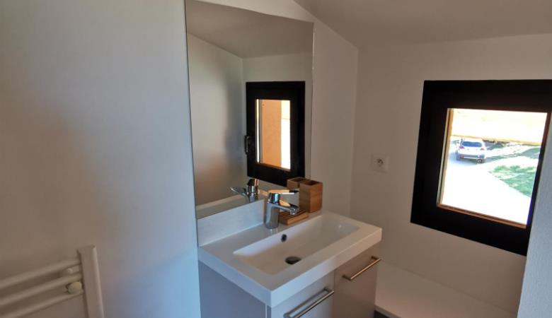 Ground floor: - Large living room with open-plan kitchen - Utility room - Separate WC Bedroom: 1 x 160x200 bed with en-suite bathroom + walk-in shower