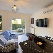 Panoramic terrace - Solarium with deckchairs - Two Catalan patios - Garden - Bar - Free private parking.