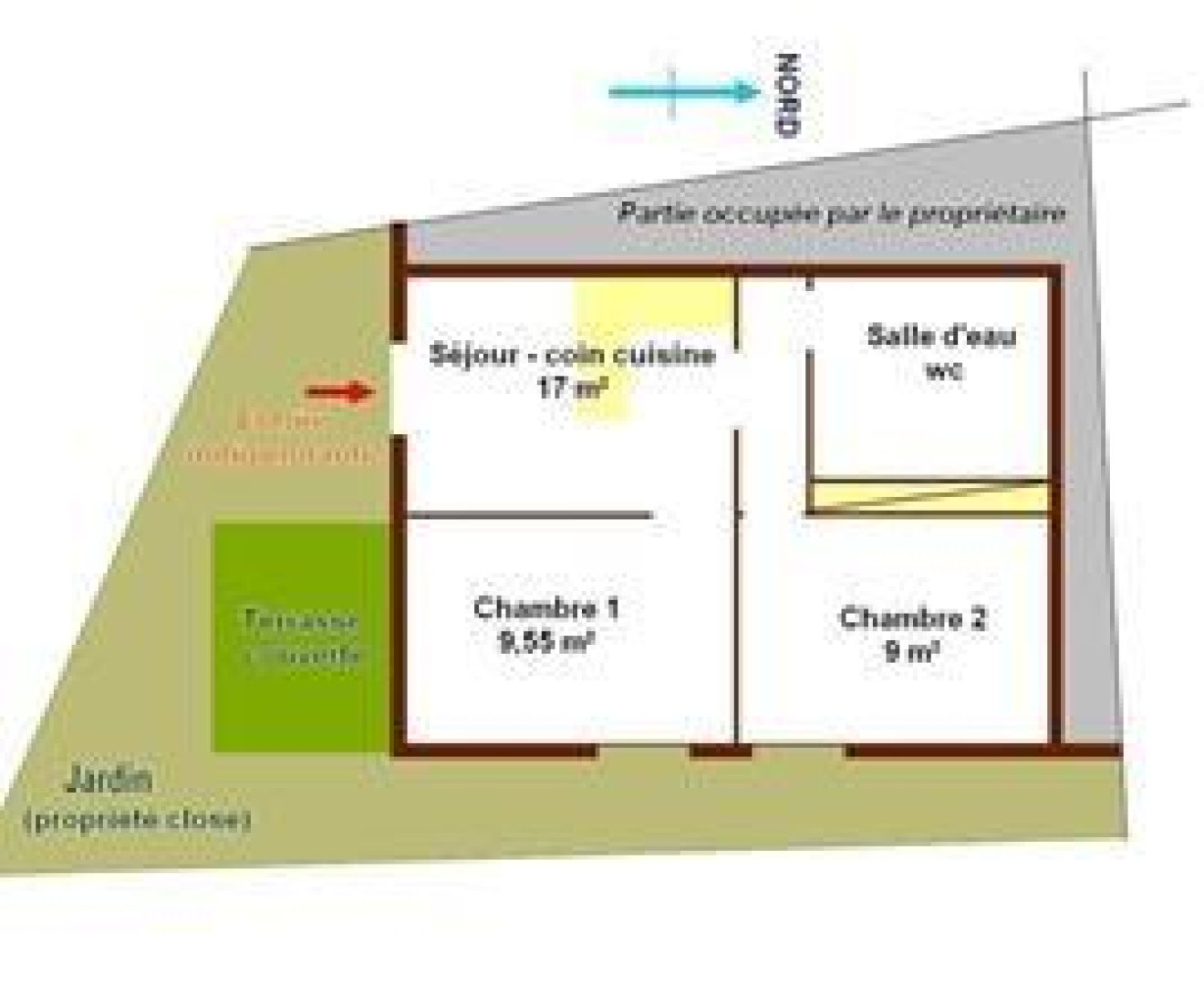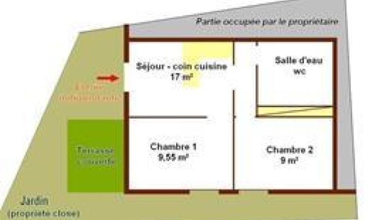 The gîte opens onto a south-facing terrace, partly sheltered and equipped with garden furniture and a barbecue.