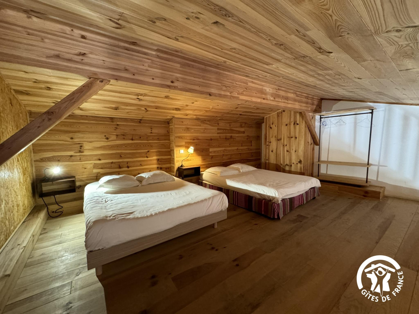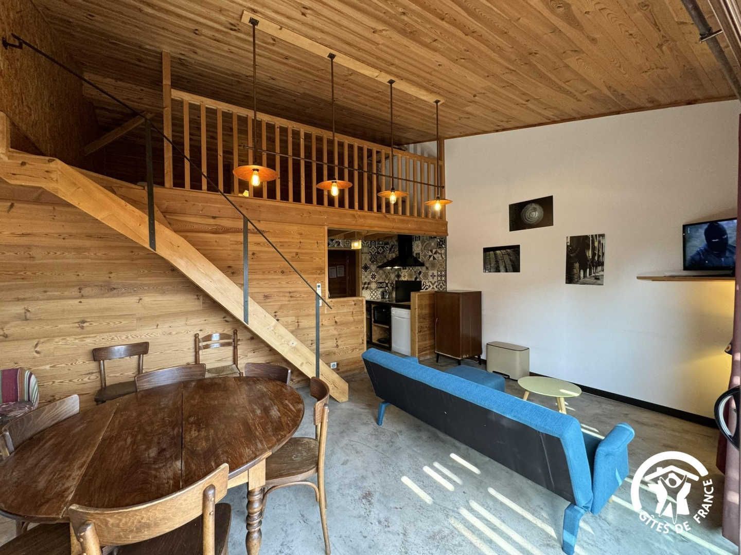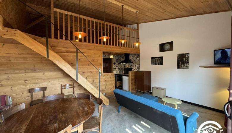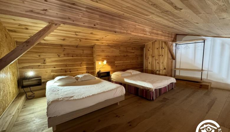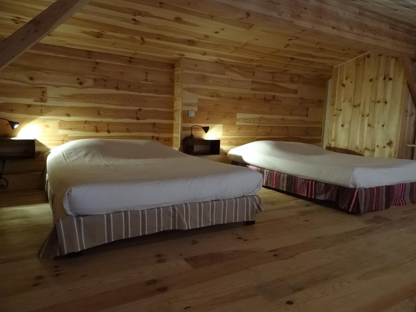 Upstairs, a mezzanine open onto the living room with 1 double bed 140x190.