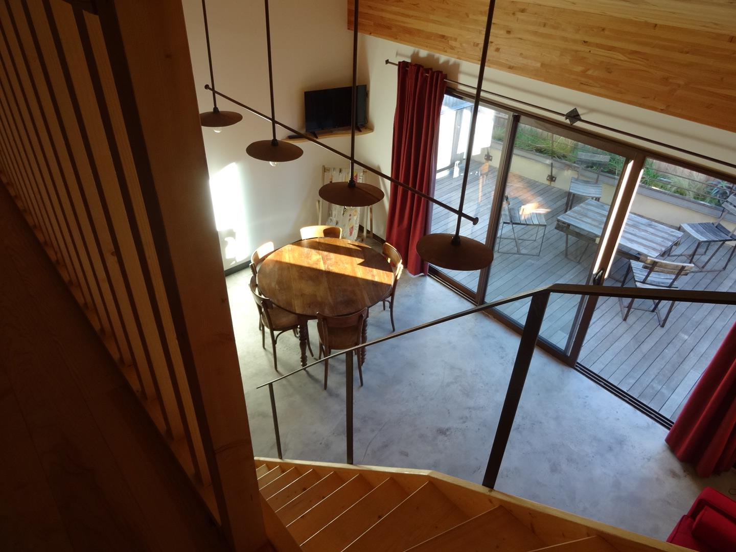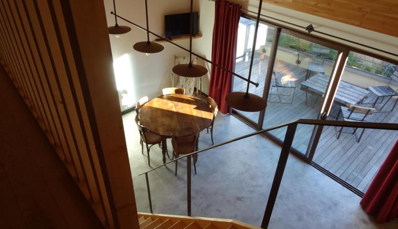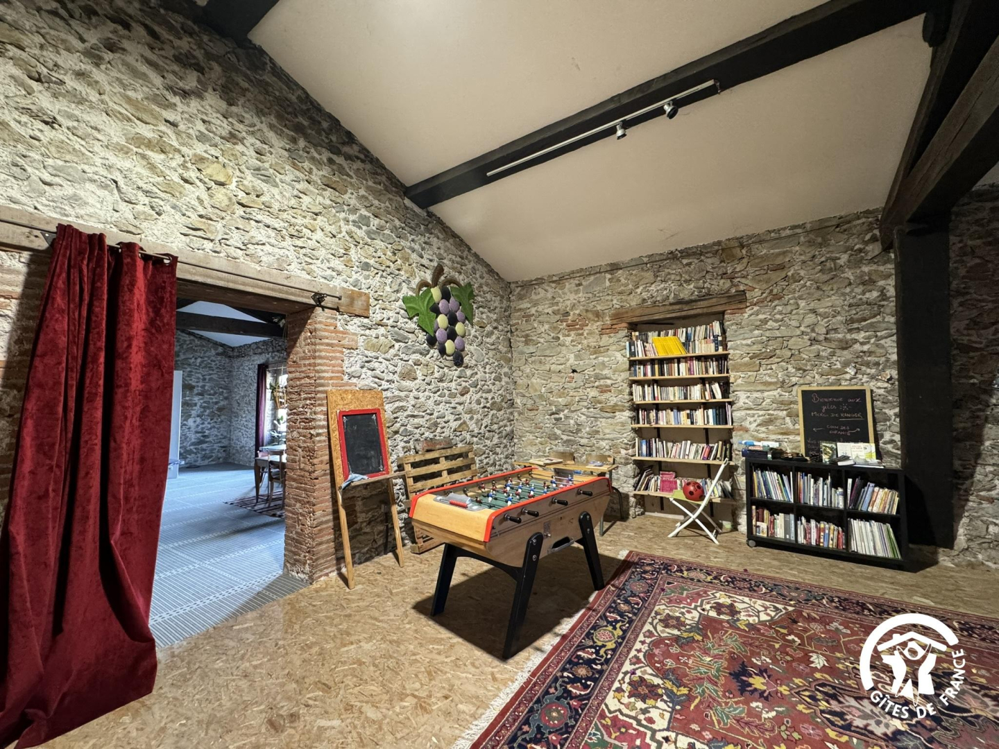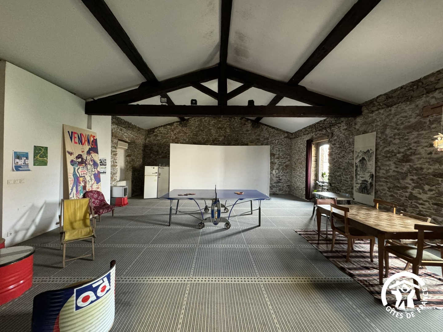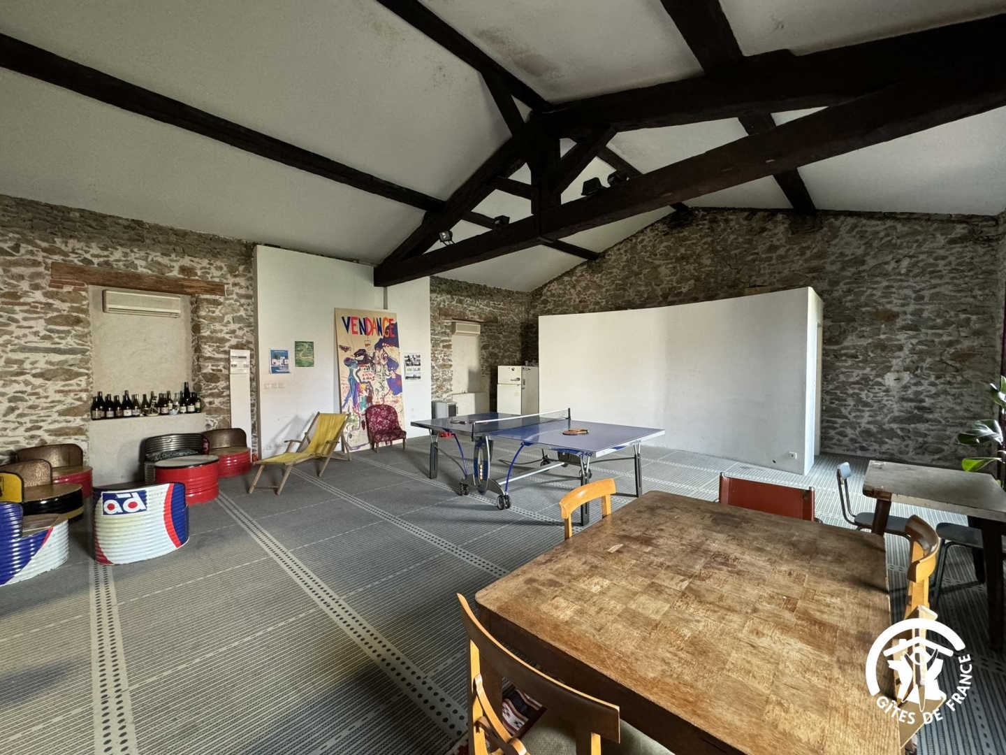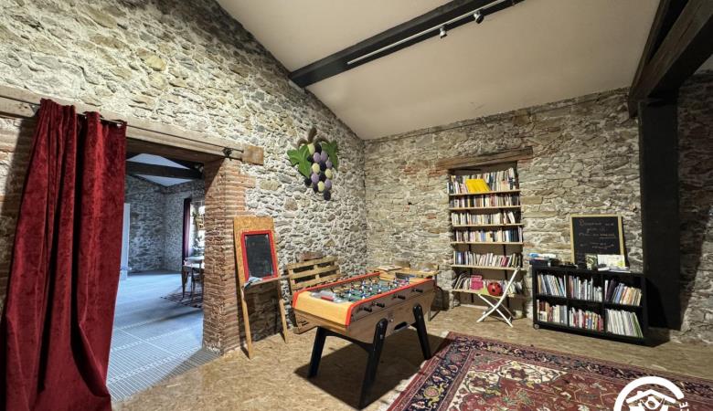 Outside, you can relax on the terrace. A shared laundry room with washing machine, tumble dryer, ironing board and iron is at your disposal. For your leisure activities, there is a table tennis table and table football. Each gîte has its own entrance accessible via a passageway. Private parking is available in the street in front of the main entrance.