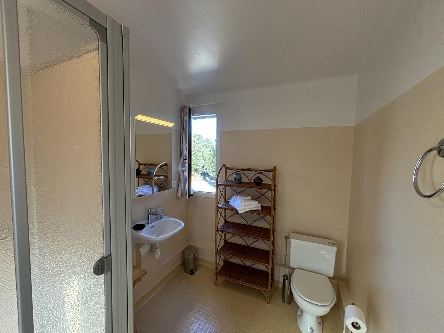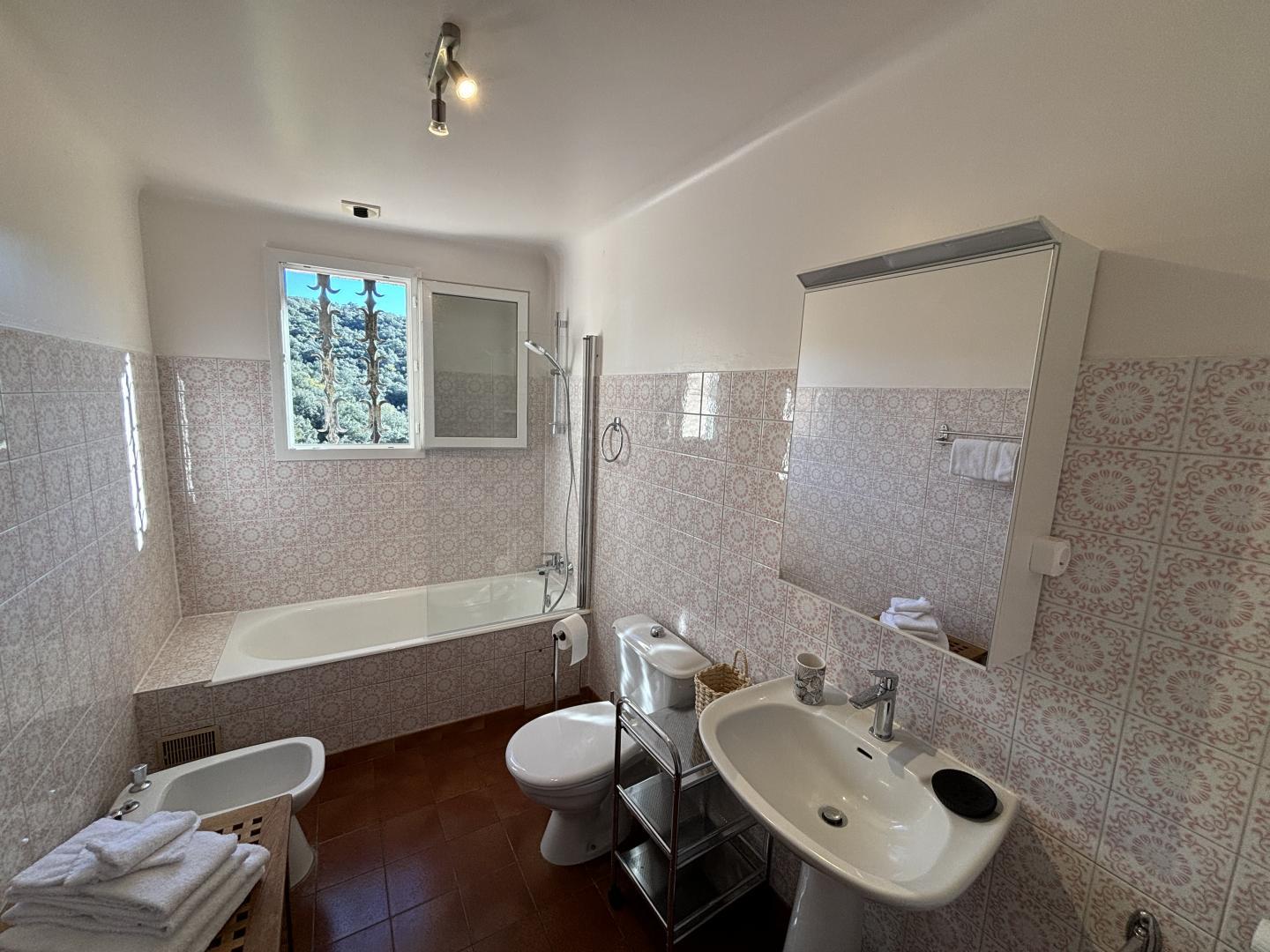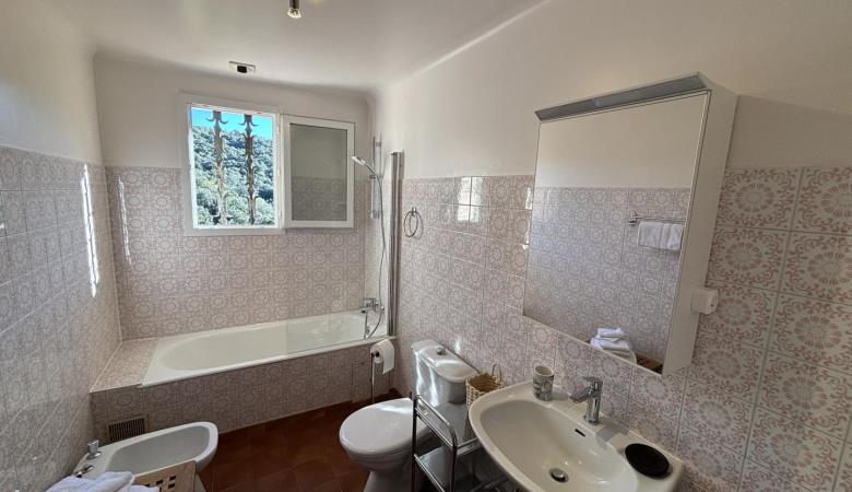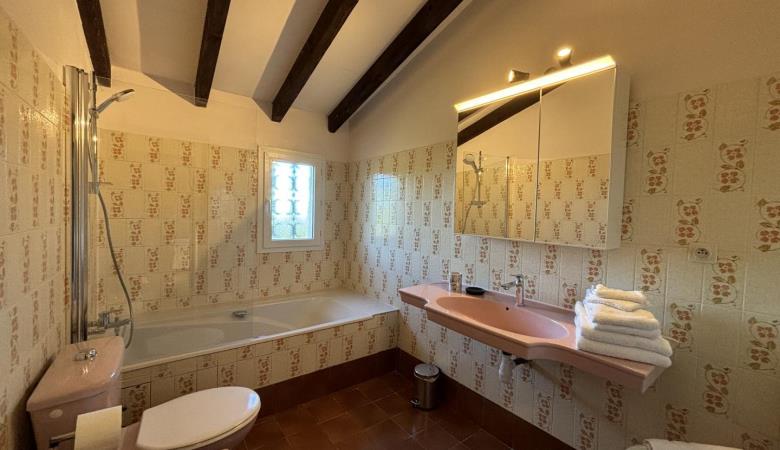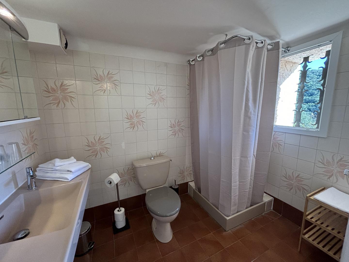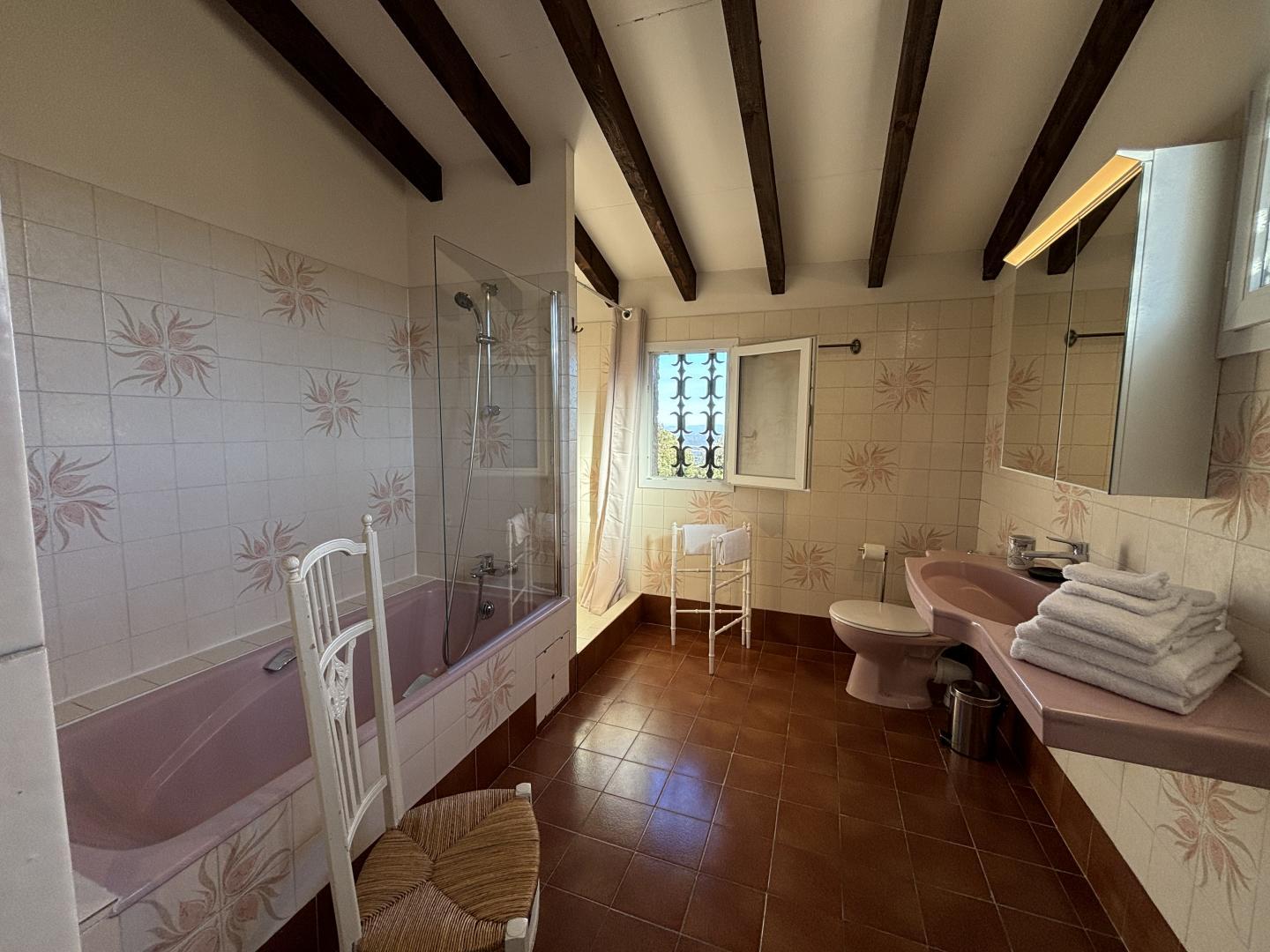 From the entrance hall, a staircase leads to the upper floor, which comprises 3 bedrooms: each has a shower room with bath or shower and sanitary facilities, a study and storage space.