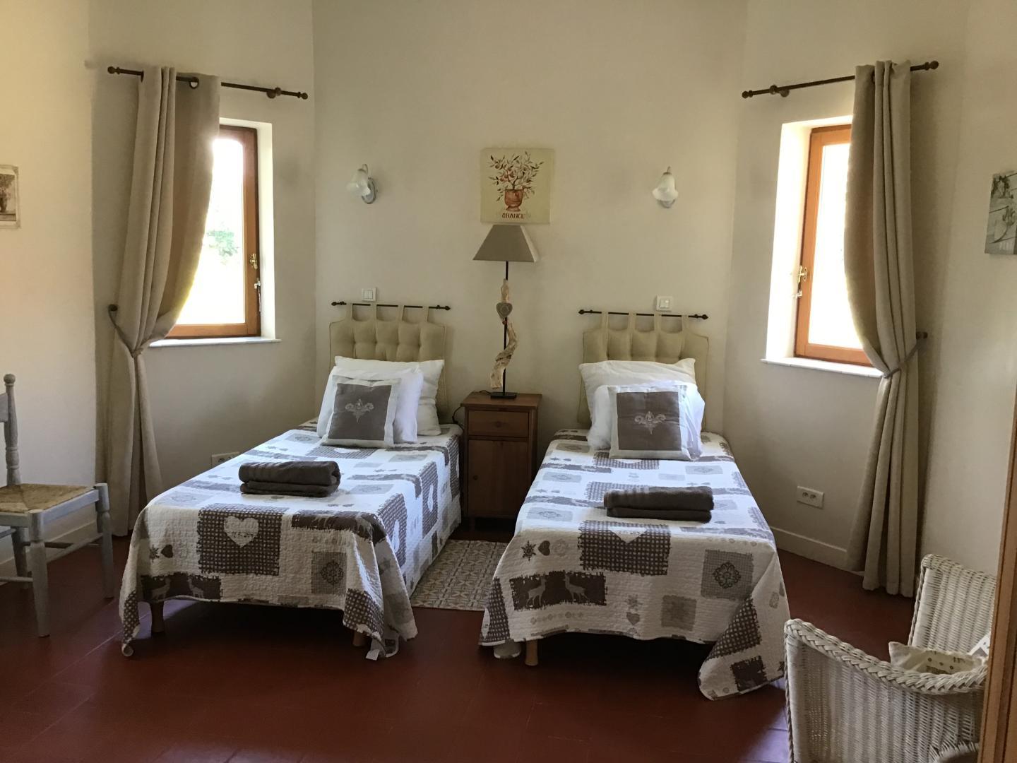 1 bedroom with 2 single beds (90x190), bathroom (clawfoot bath / wc).