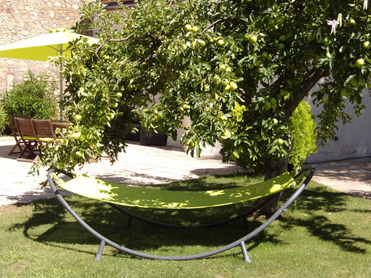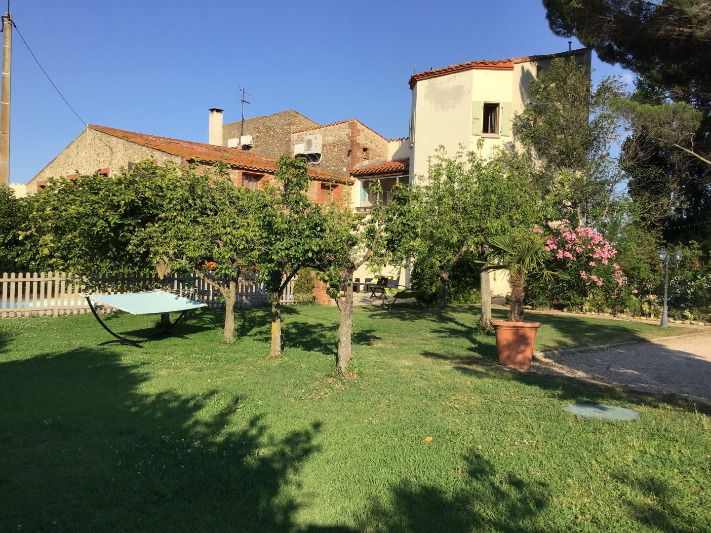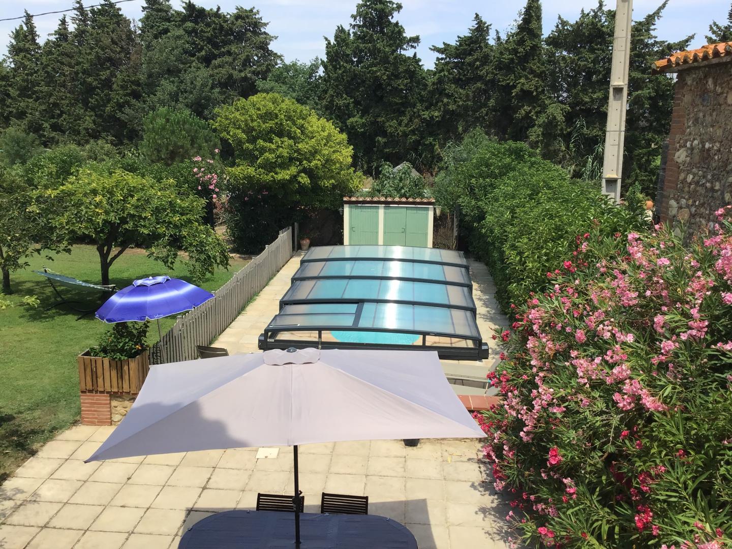 Enclosed garden with trees and flowers and terraces (garden furniture, barbecue, hammocks). Swimming pool (8 x 4 x 1.10 to 1.80 m)