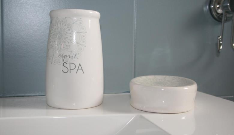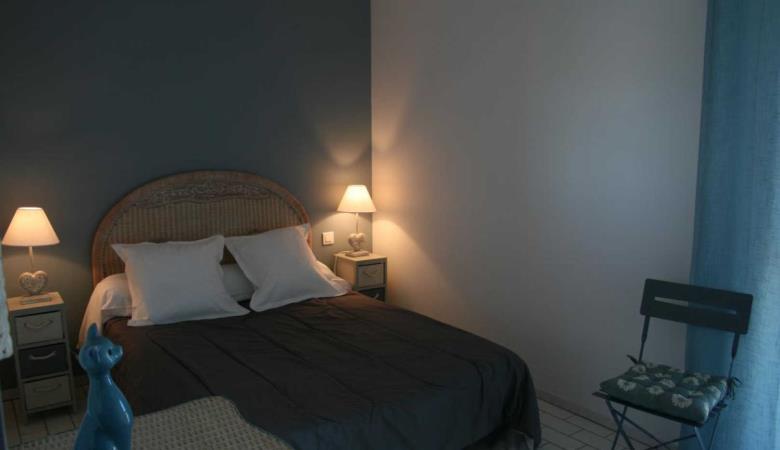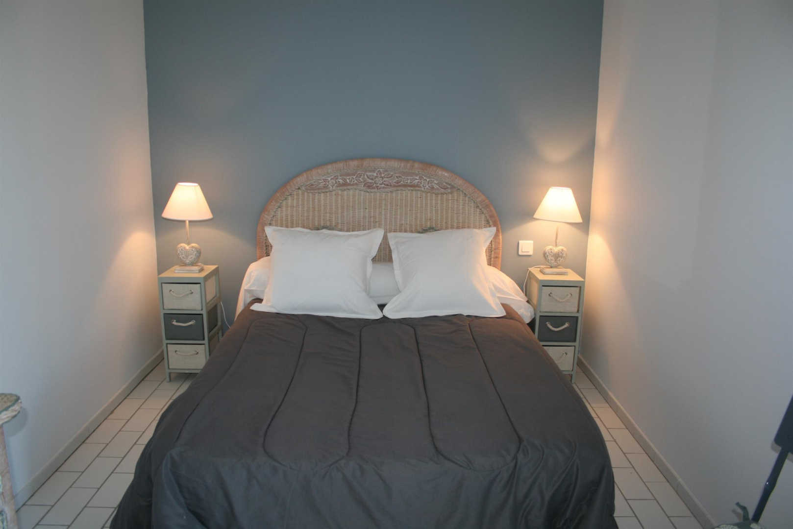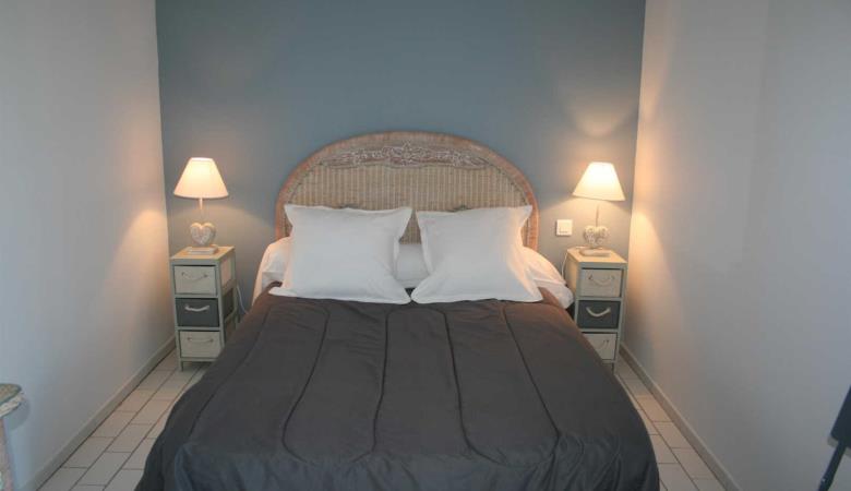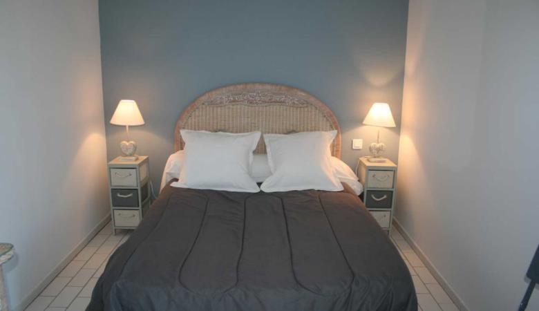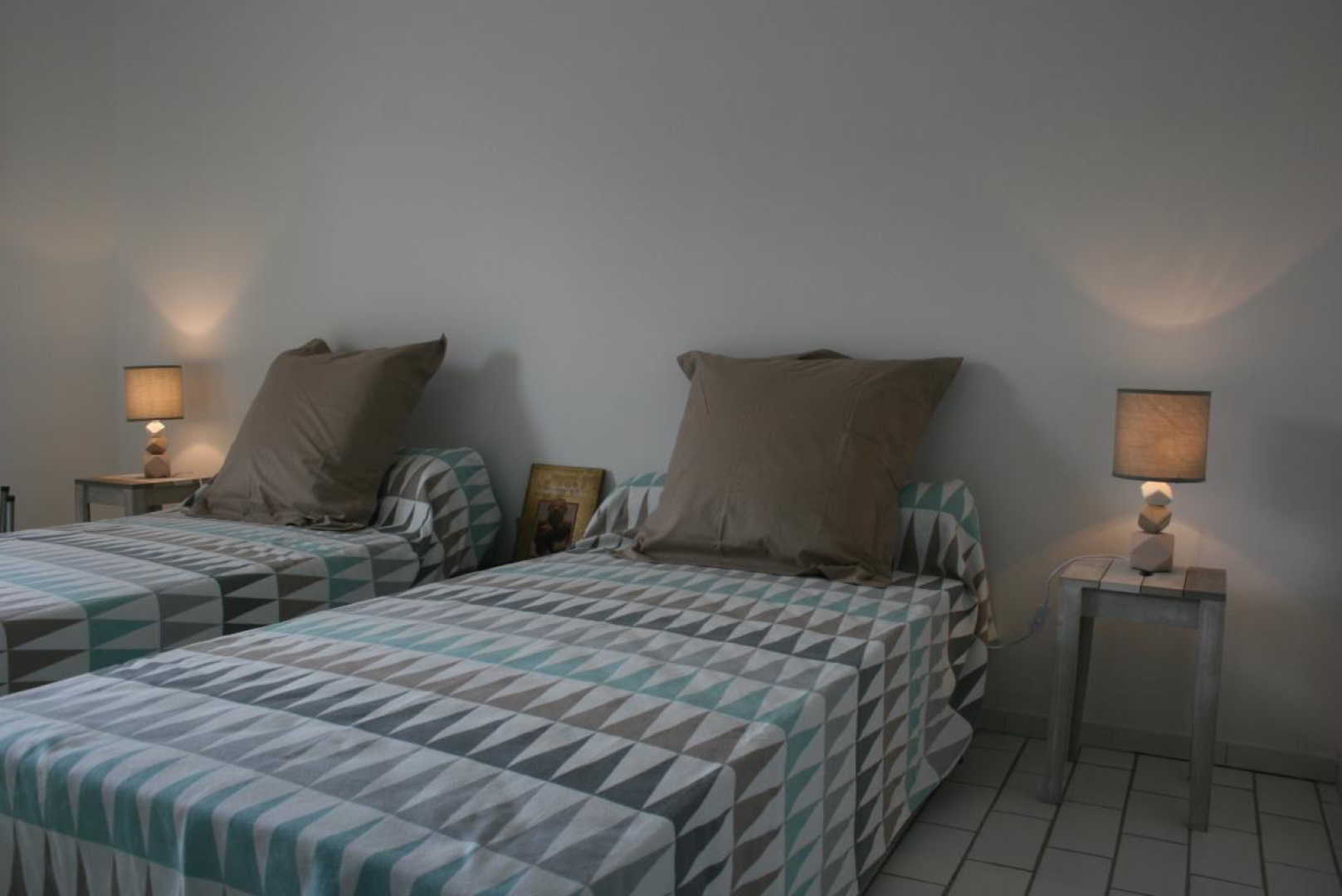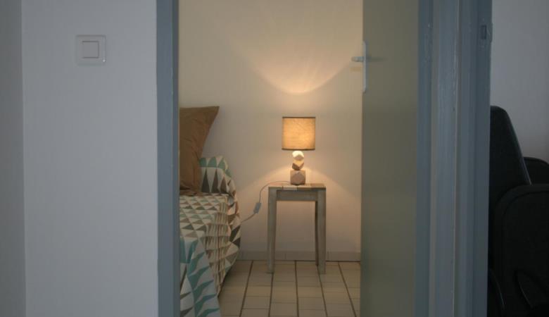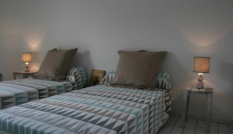 One bedroom with 2 single beds (90cm) and small adjoining terrace to the rear