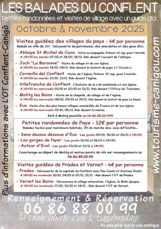 Through the fields of fruit trees, up into the medieval village and its authentic lanes, walking on the hill that dominates, discover one of the most beautiful and sunniest villages in France: Eus in all its states!