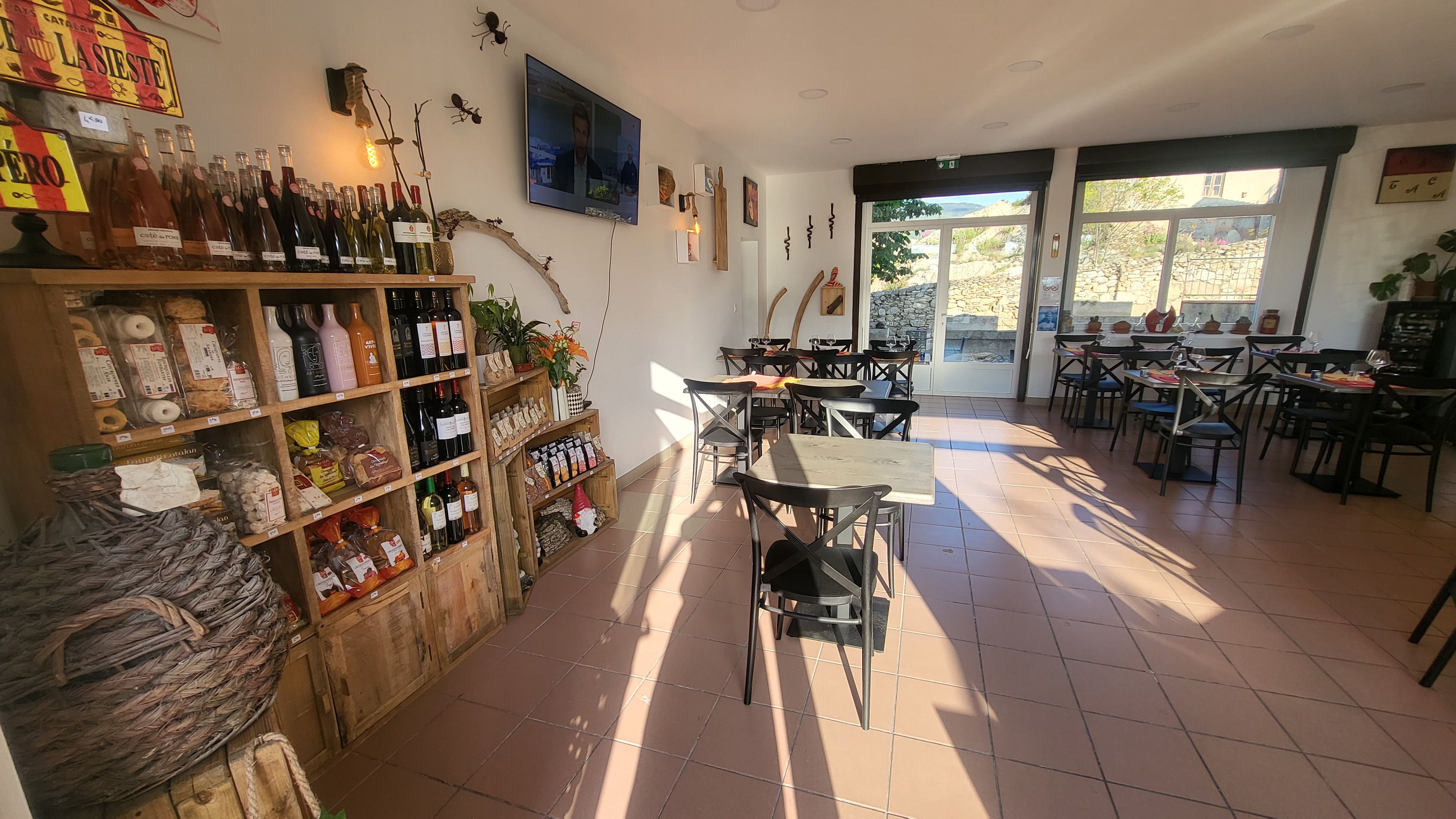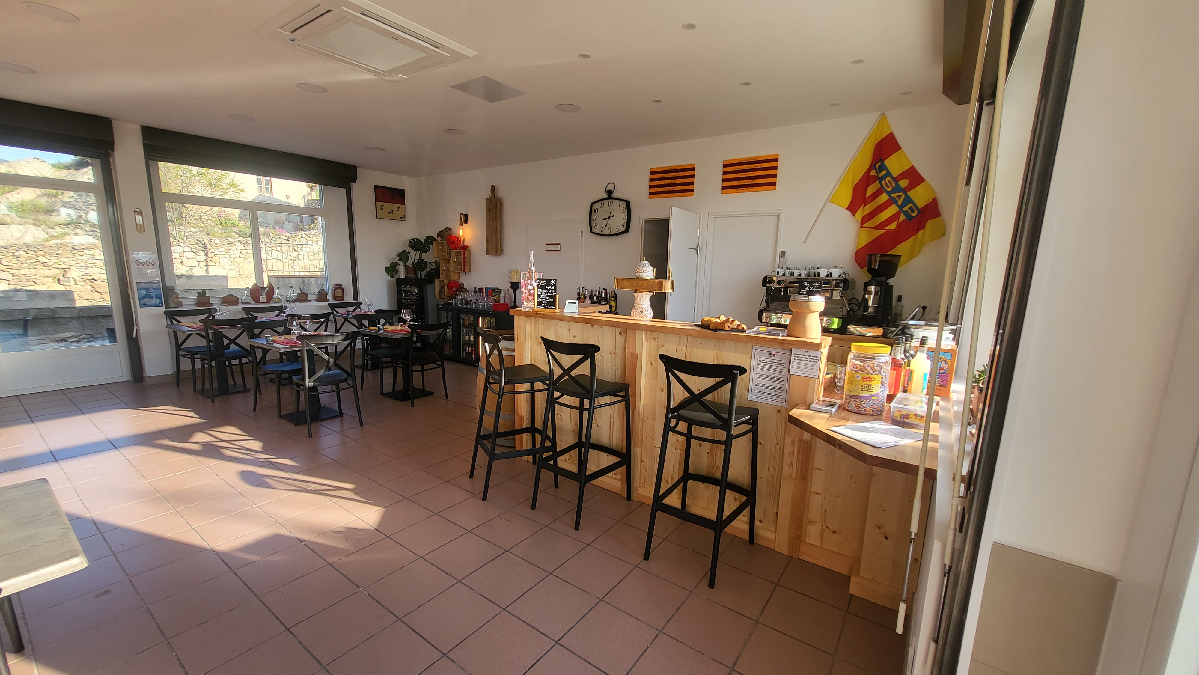 Breakfast menu in the morning. The restaurant offers traditional Catalan cuisine with salads, fish, burgers, tapas platters... And a daily menu. Enjoy a sweet break on the terrace during the day with ice creams and crêpes.