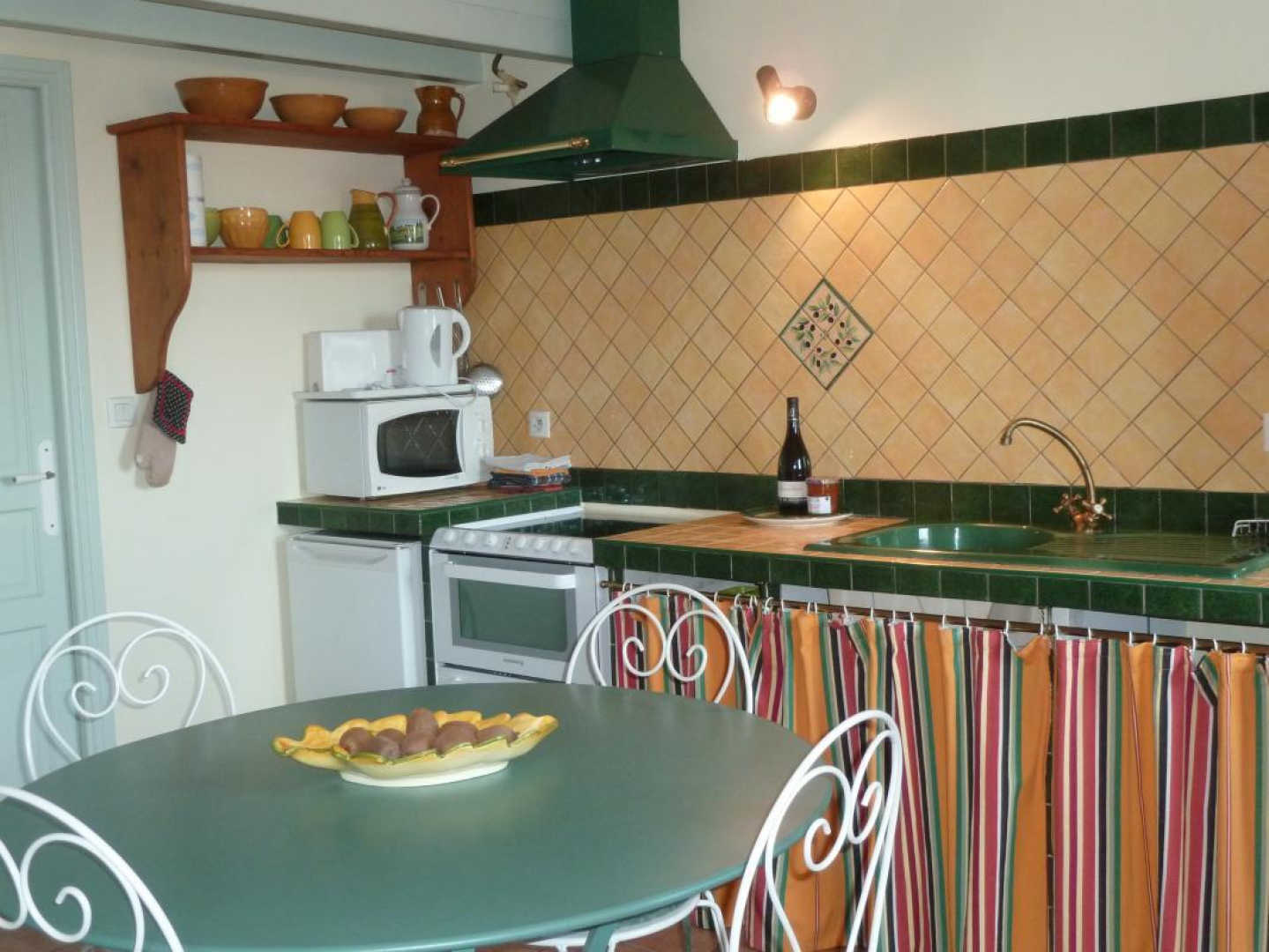 Come and recharge your batteries or spend a family holiday in this haven of peace, just a stone's throw from the sea. An unspoilt, authentic setting, in the same family for generations, superbly maintained by your hosts Michel and Marie. This gîte, located in the oldest part of the farmhouse, still in use, will surprise you with its cool, calm surroundings. This charming accommodation, which can be combined with an adjoining gîte (Massane), can sleep up to 9 people. Mas de caractère du Roussillon, on a working farm, comprising 2 adjoining gites. The owners live on site. 1st floor: living room with kitchen, 1 bedroom (1 x 160cm bed), bathroom. Possibility of 1 extra bed (children) on 2nd floor. Air conditioning. Covered shelter, terrace and enclosed garden (garden furniture, barbecue). Private car park. Storage room (bikes, sailboards).