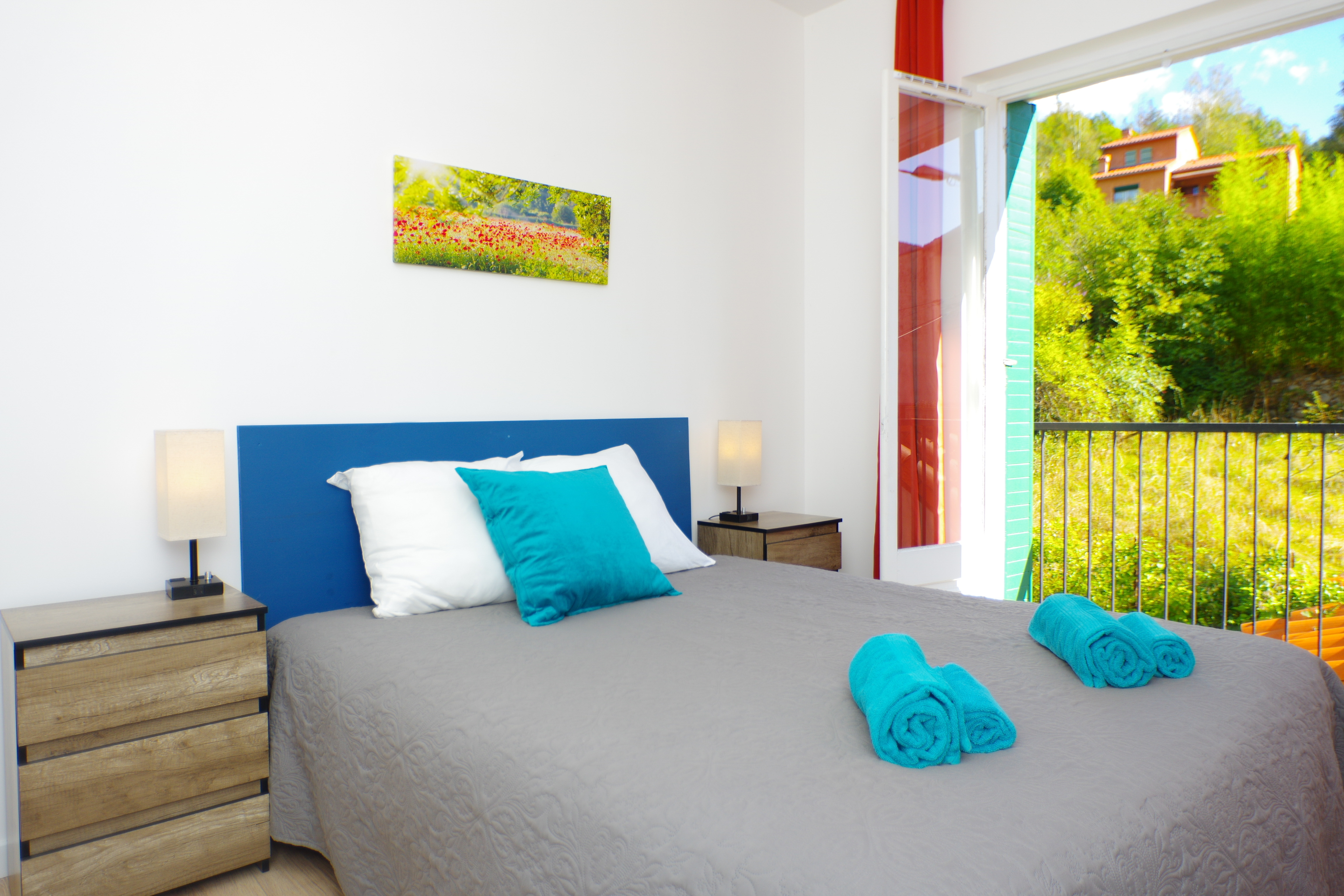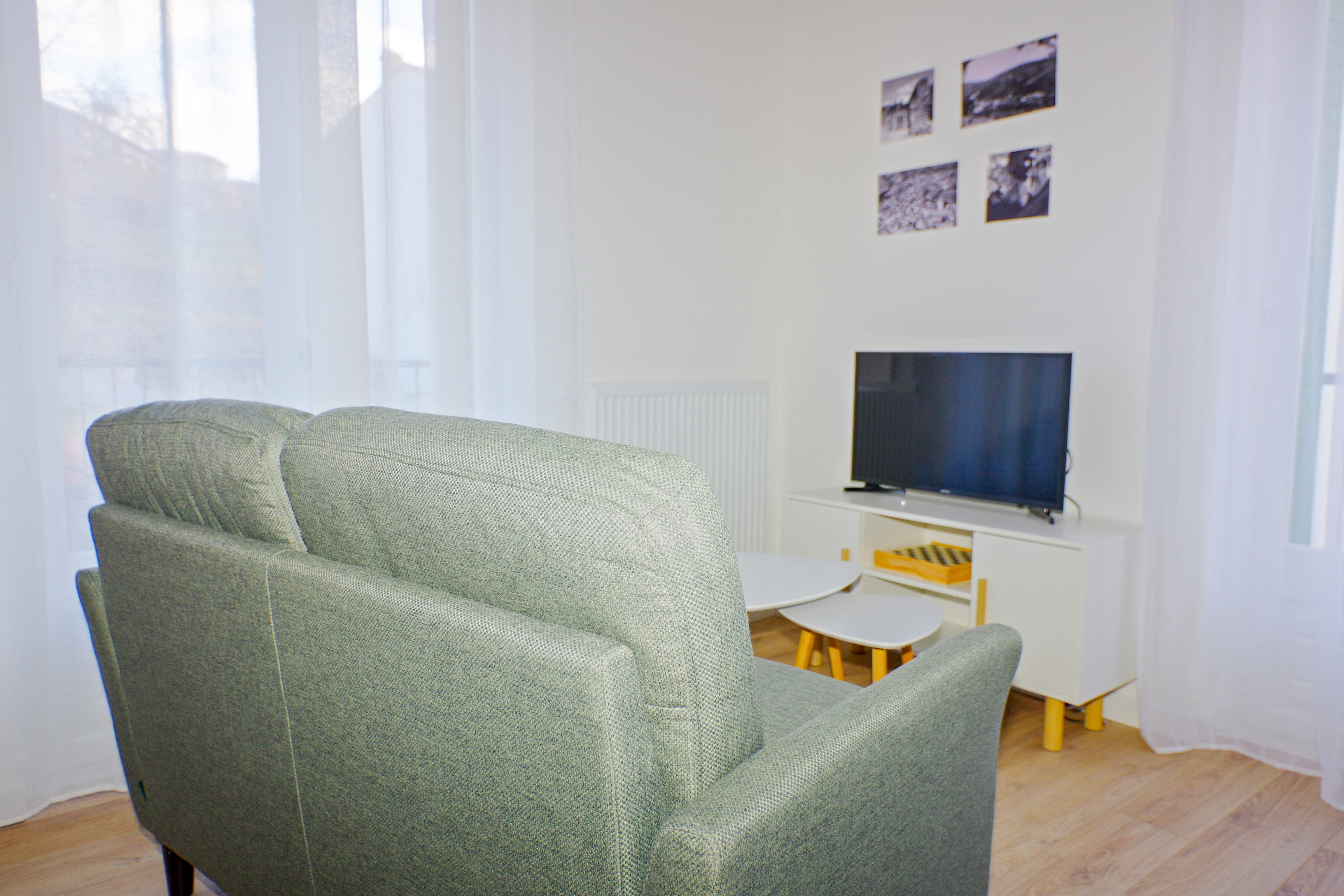 The tastefully furnished living room offers a convivial space in which to relax after a busy day. The large windows allow natural light to flood into the room throughout the day. The fully-equipped, functional kitchen is perfect for preparing delicious meals. The bathroom is modern and well-maintained, with a spacious shower. The bedroom has a king-size bed (160x200) and offers an intimate space for rest and relaxation. Built-in wardrobes provide practical storage space.