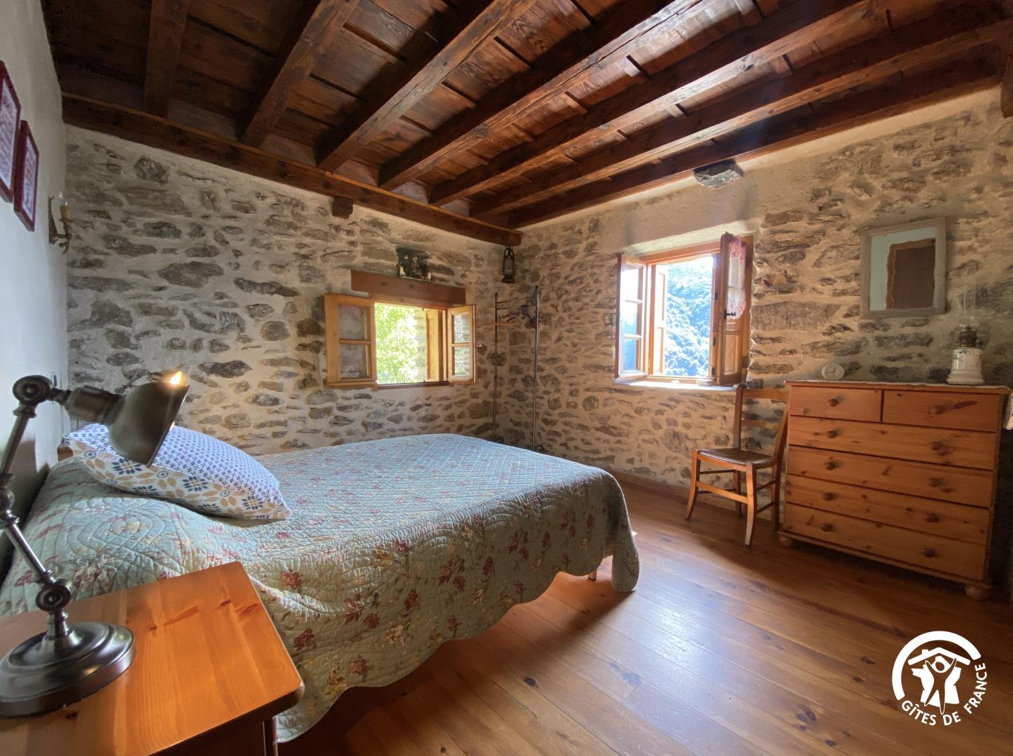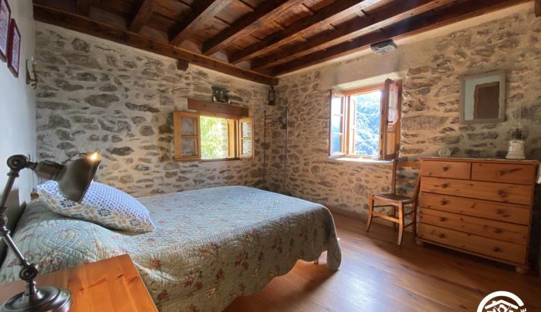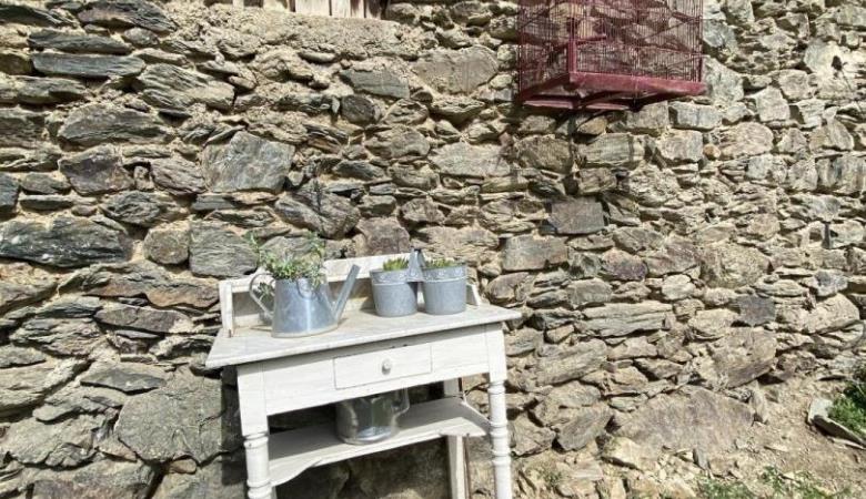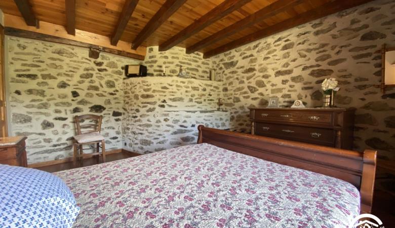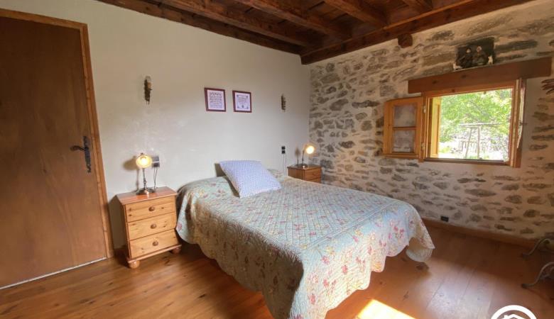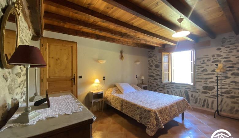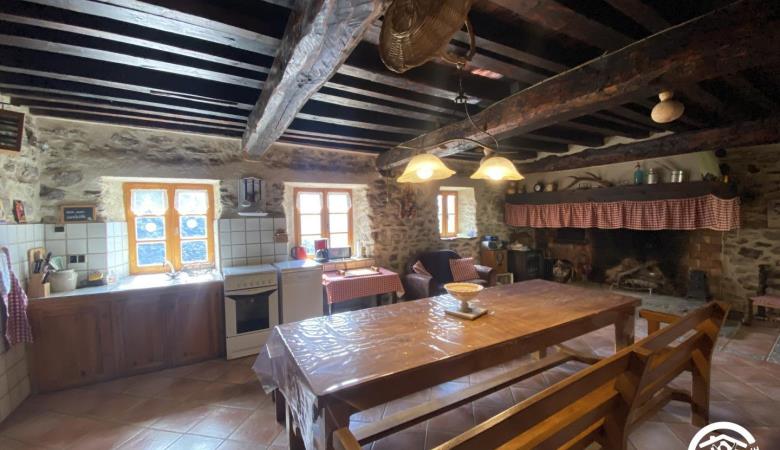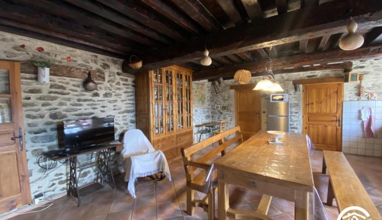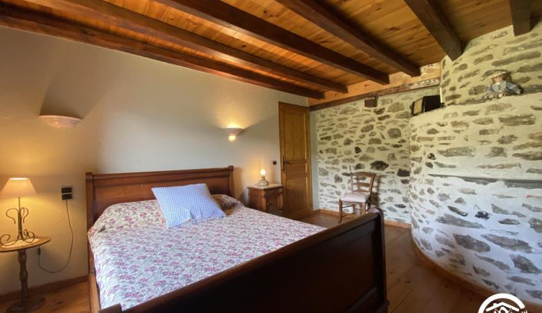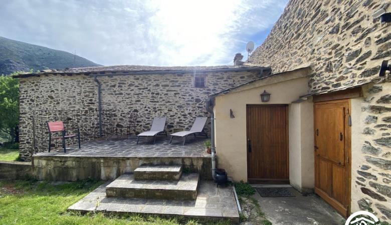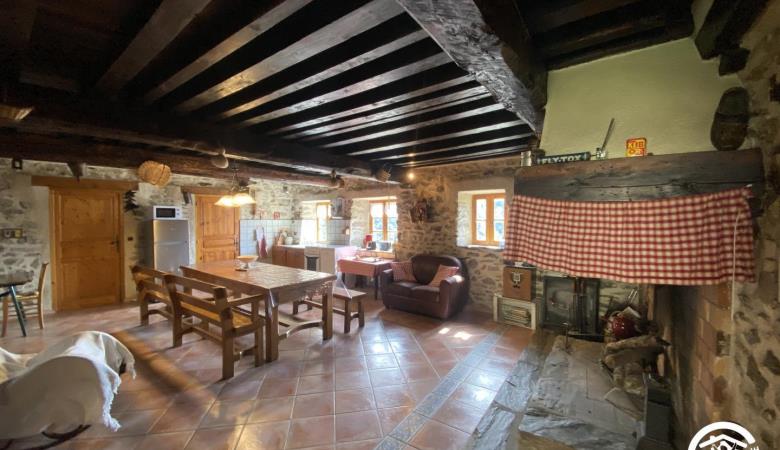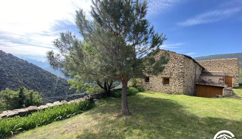 This renovated former sheepfold, full of character, is completely independent, set on a mountainside overlooking the valley and comprises :