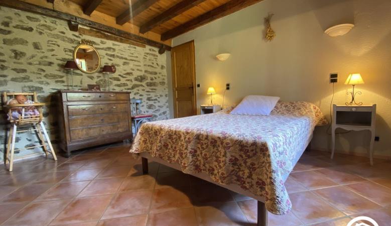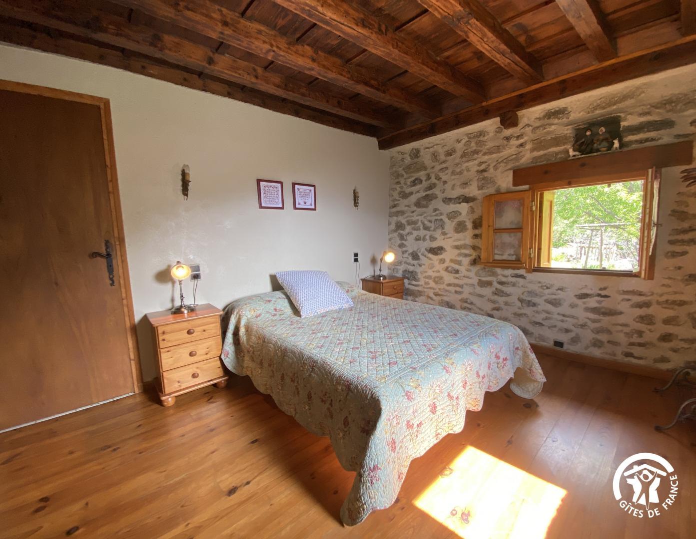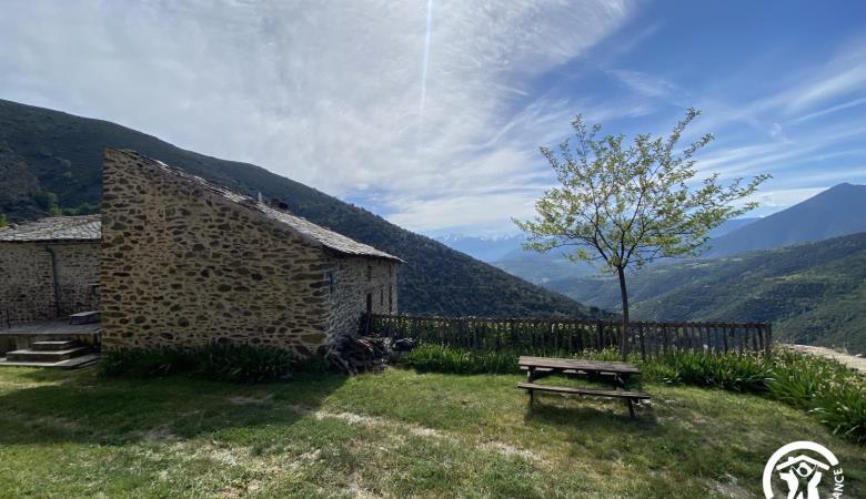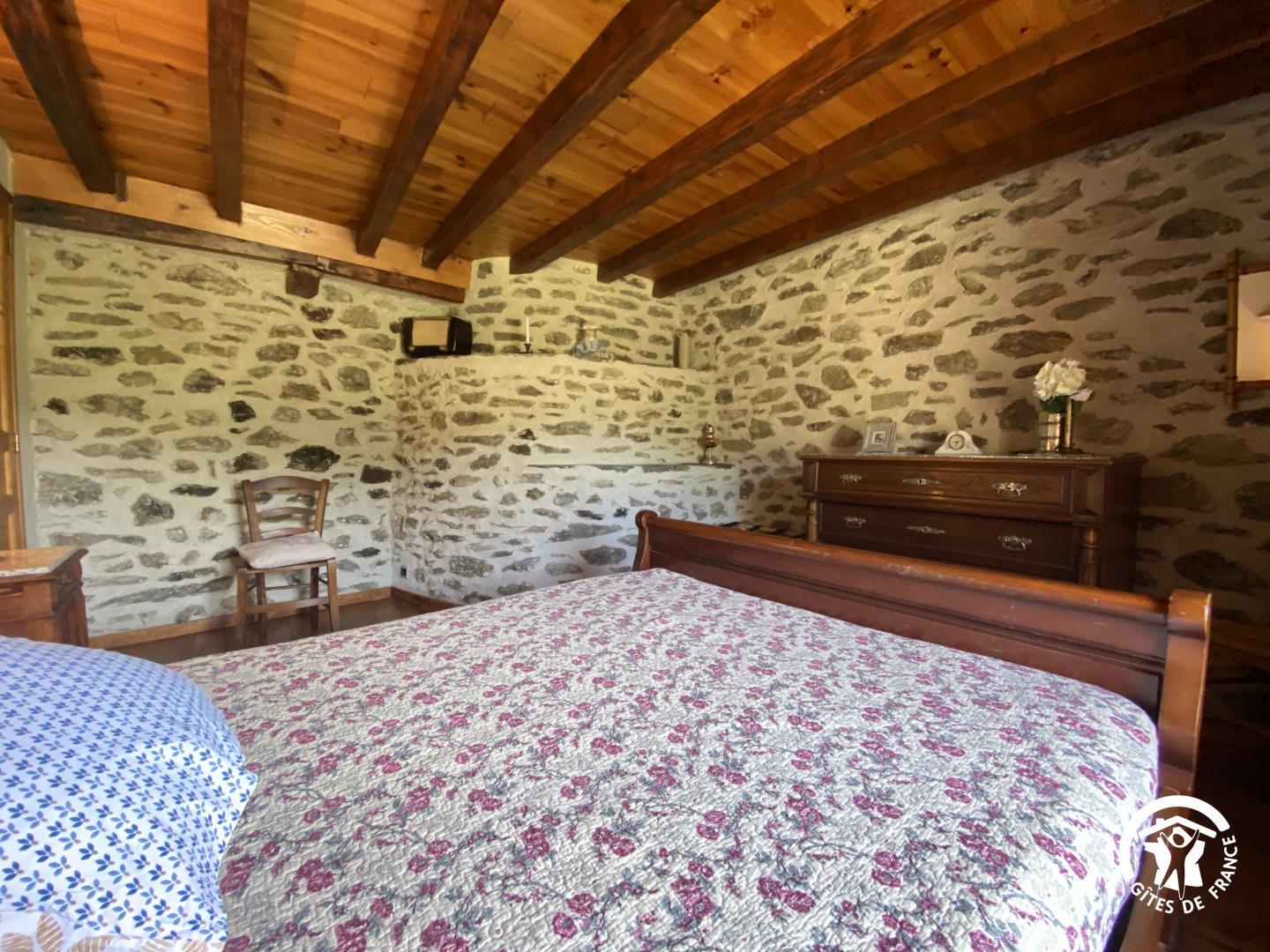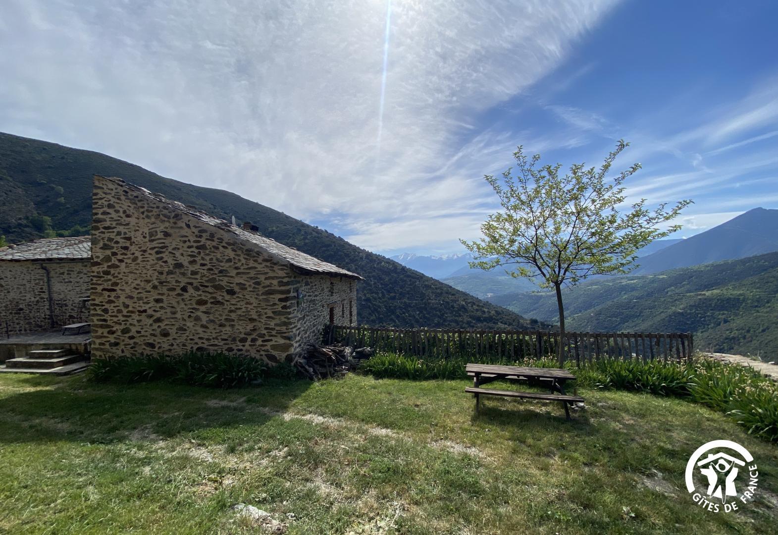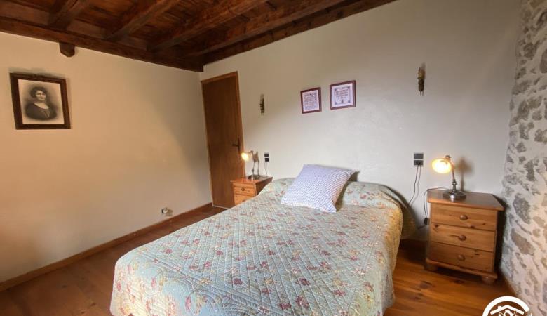 This renovated former sheepfold, full of character, is completely independent, set on a mountainside overlooking the valley and comprises :