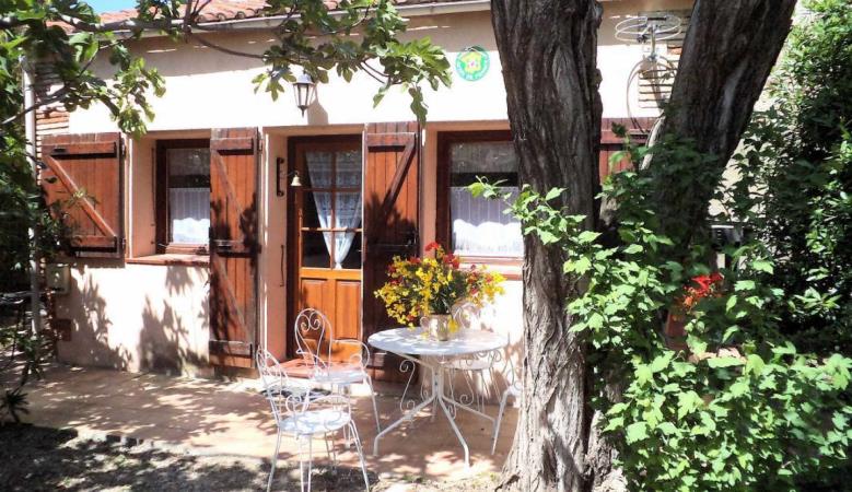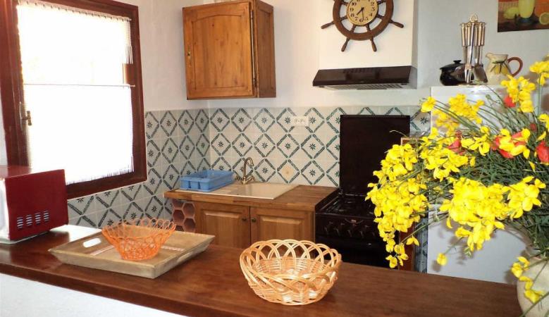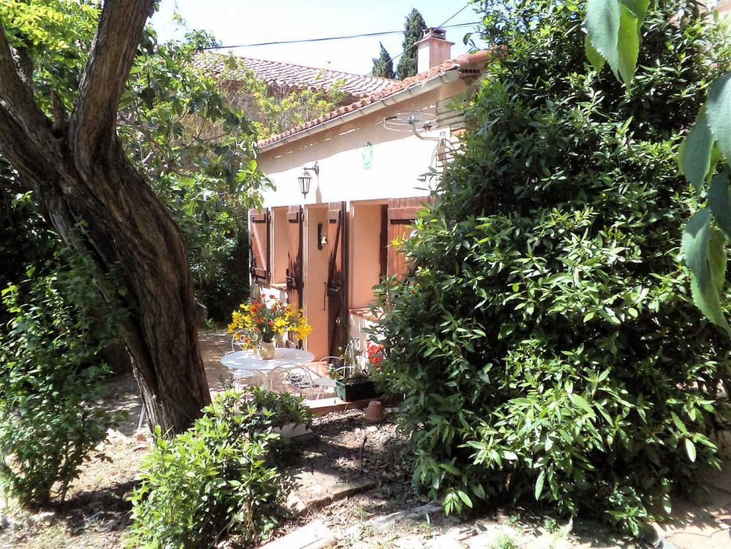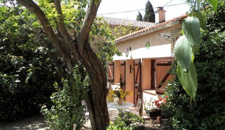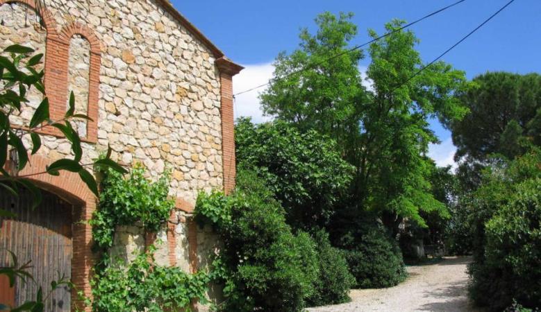 Authentic Catalan farmhouse surrounded by vineyards and olive groves (agricultural environment), comprising the independent gîte and traditional buildings (cellar and barn).