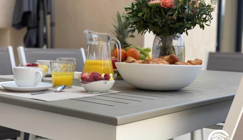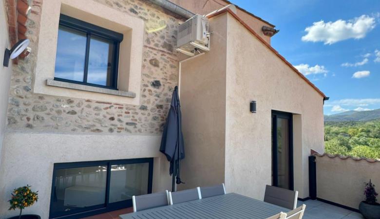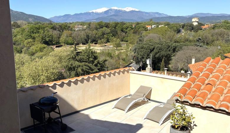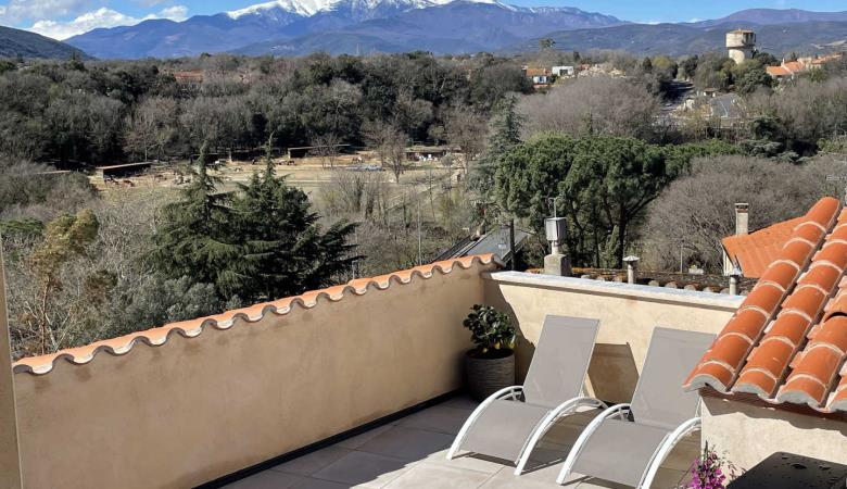 As soon as you arrive, let yourself be charmed by your magnificent private terrace, offering a panoramic view of the Canigou and Boularic mountains. It's the ideal setting for convivial meals with family or friends, and will become the scene of unforgettable memories.