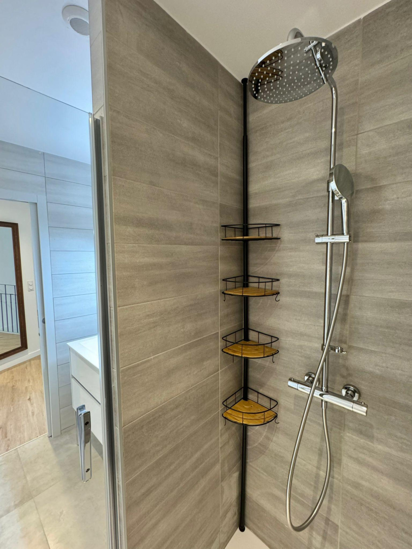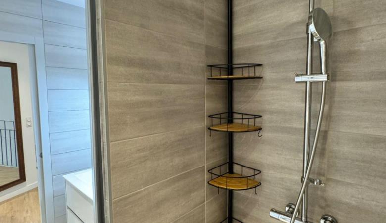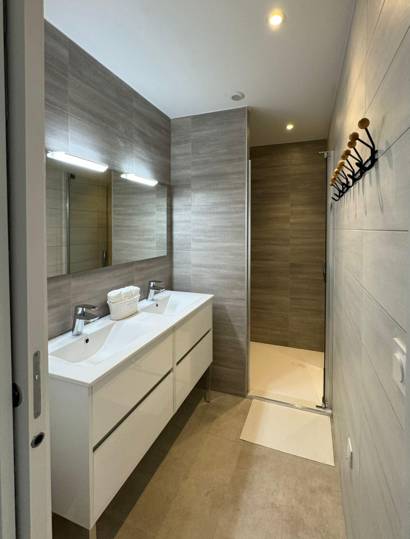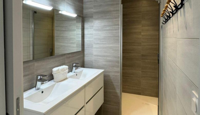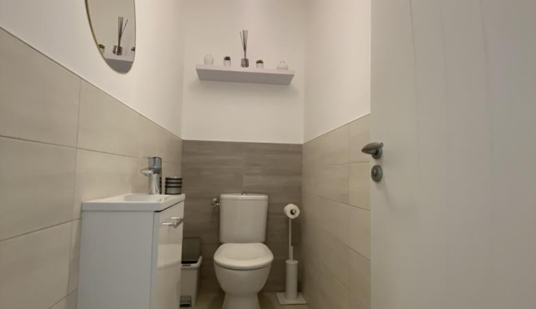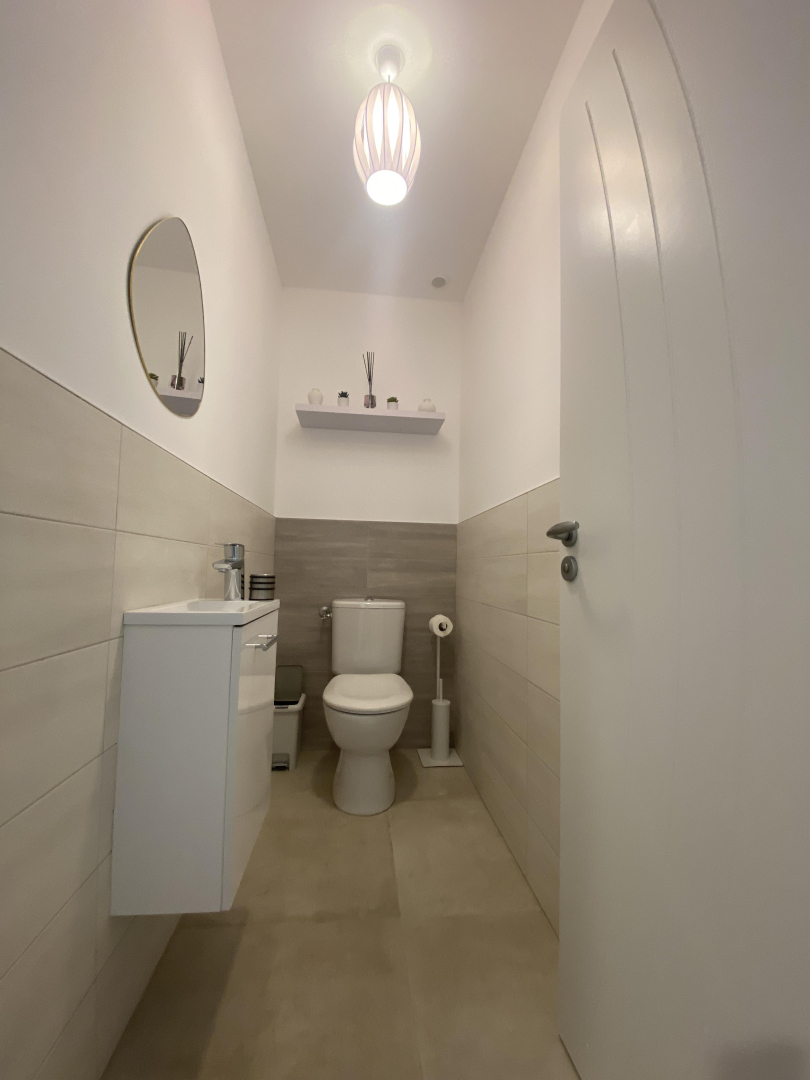 2nd level: 2 bedrooms, each with a double bed (140cm), shower room (double washbasin, shower), wc.