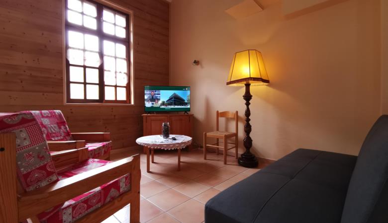 Living room with sofa-bed 2 pers, TV and kitchen: dishwasher, microwave