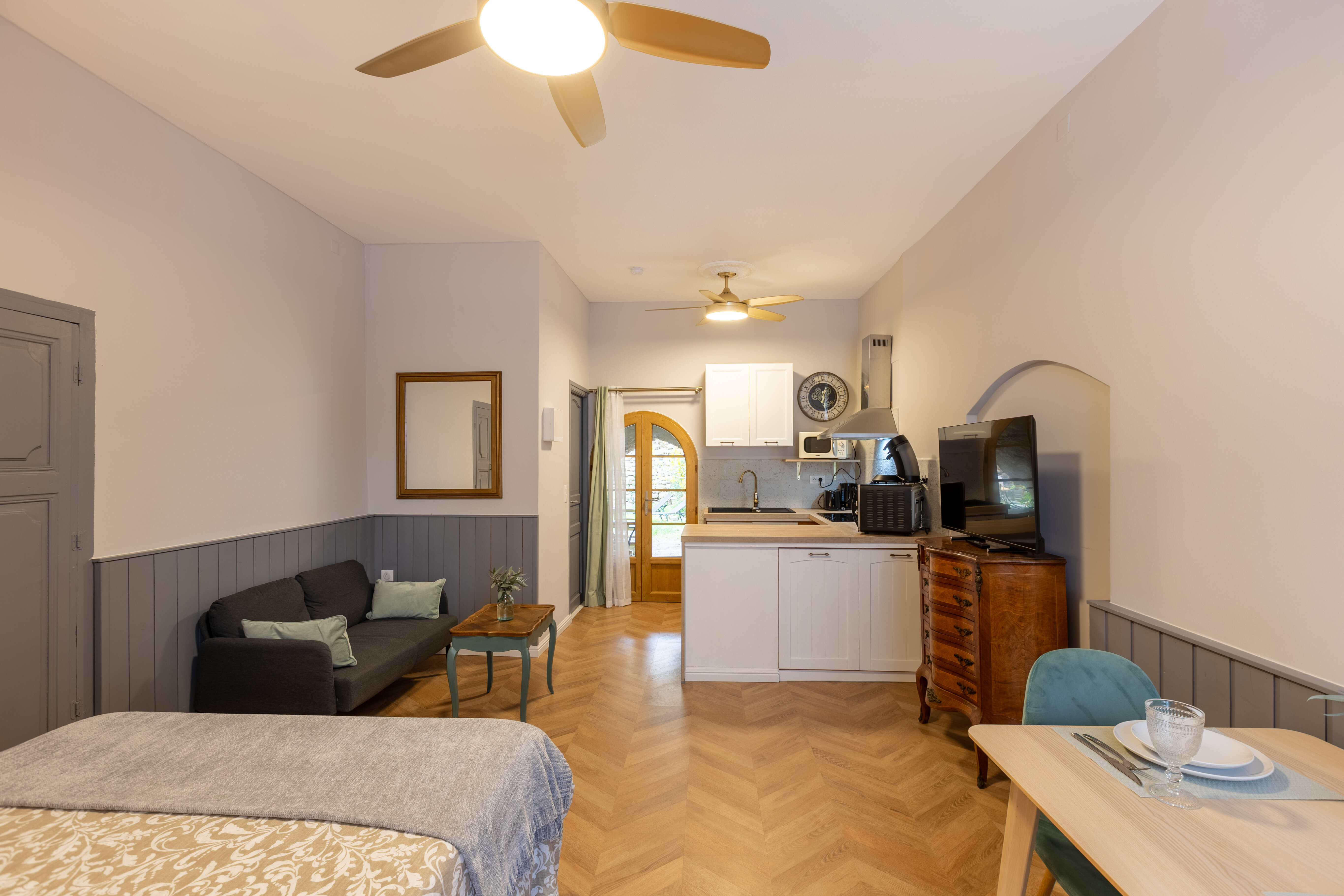 Fall under the spell of this ground-floor studio, combining authenticity with modern comforts. Its superb stone vaulted ceiling gives it a unique cachet, perfect for a romantic getaway or a solo getaway.